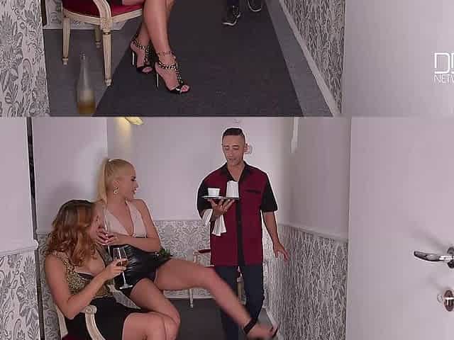 Hallway Cum Swap - Blondes Blow Waiter's Big Hard Cock - PornWorld