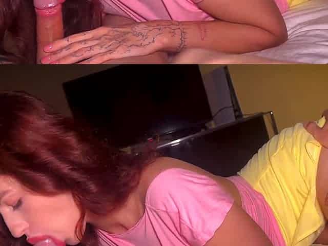Russian stepmom sucking stepsons hard cock
