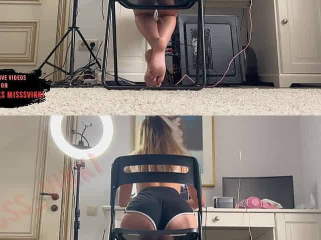 Young college girl Viktoria Tiny gets off on her legs for a classmate