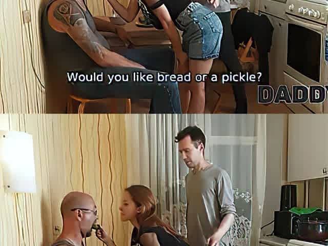 "Stepsis,Dad! Are YOU banging? I wanna also!"-two stepsis-Skinny & Breasty-Double BJ, Anal & exchange cum!