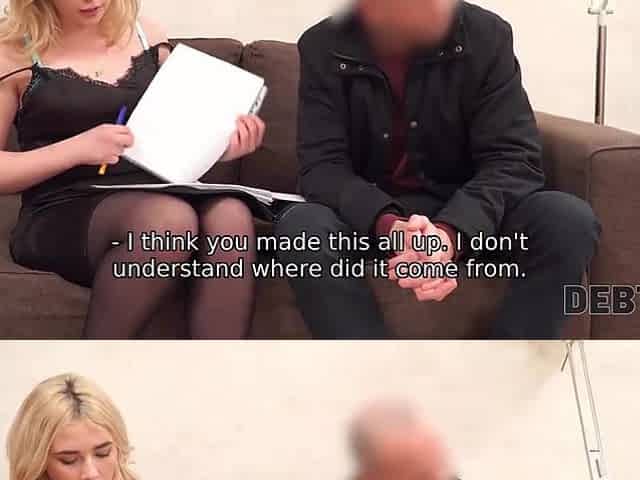 Debt4k. Cute Maria Hurricane hairdresser took a debt for sofa and now needs to pay for it