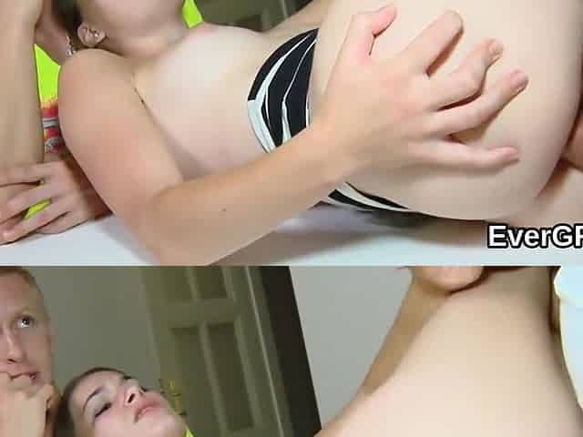Skinny teen Karolina Geiman gets her asshole gapped hard
