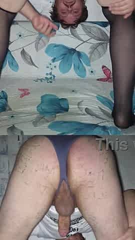 Homo masturbating doggy-style! Biggest booty in a constricted strap! Close-up of the ramrod!