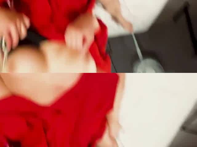 A Beautiful Girl in a Red Dress Received Her Portion of Sperm Right on Her Big Ass!