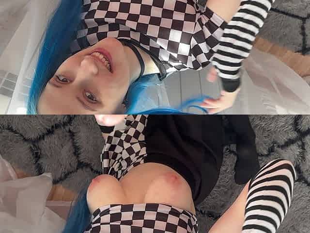 First Anal with a Big Dick. Creampie of a Big Ass 18 Year Old Beauty with Blue Hair