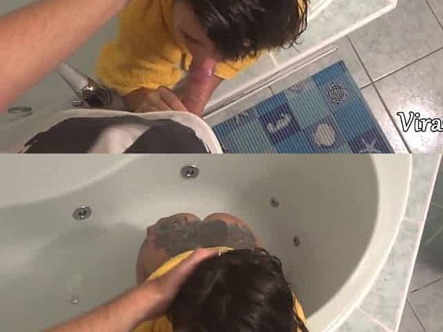 Напихал в рот своей соседке прямо в ванной