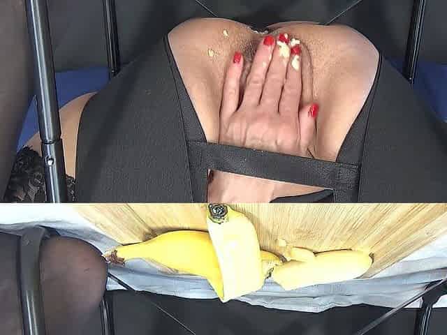 Banana in my large adult pussy close up