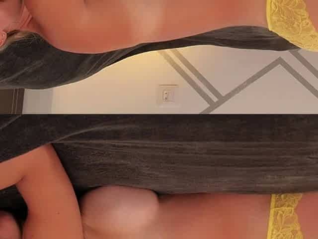 Russian blonde shows her naked body and caresses him