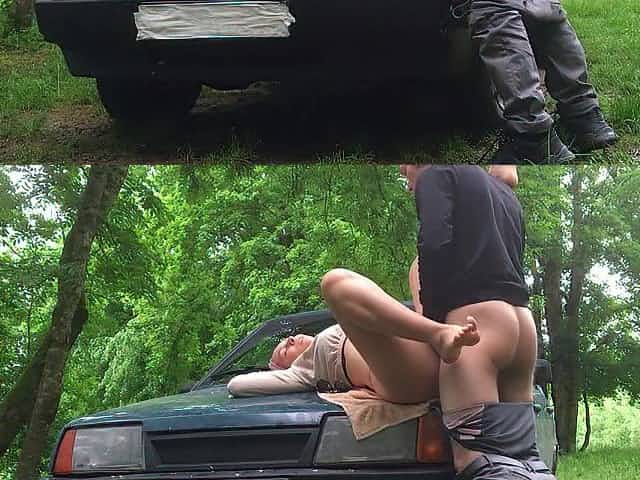жуткий секс на капоте обоссанной тачки