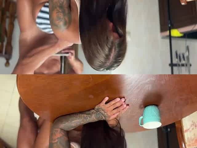 Hottie sucks his dick and lets him put it inside her tight asshole