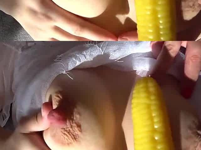 Homemade Lesbian BBW sex with corn sex toy - fat ass mom in stockings