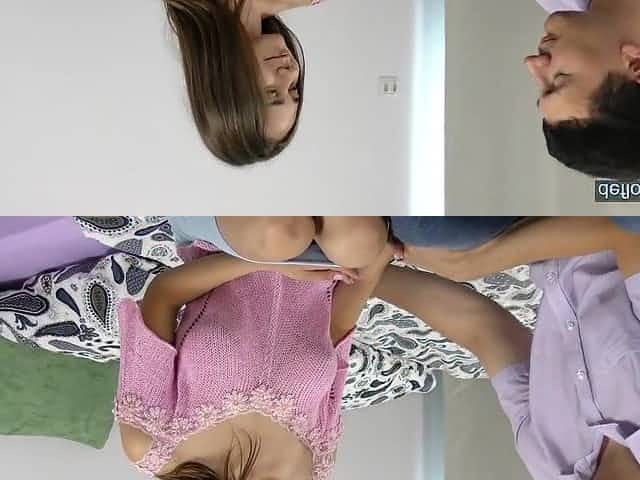 Sexy fuckable Russian babe flashes her perky tits in front of hubk dude