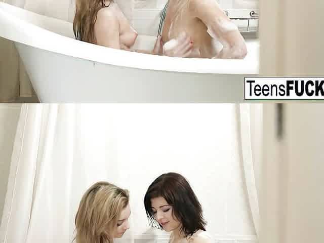 Innocent nerdy redhead gets drilled in every tight hole while showering for Lustery