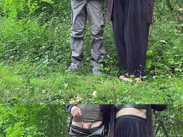 Fingering my mother in laws ass while she jerks off my cock in the park