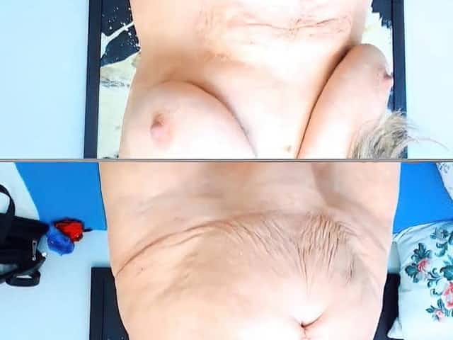 sexy granny flashing her large breasts of her spouse hidden