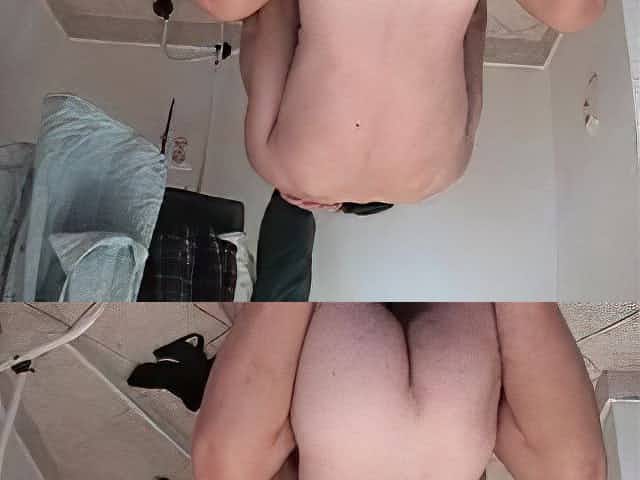 Lukerya tries on a jacket to a skirt, shows naked boobs
