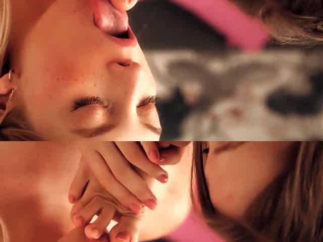 Two Beautiful Girls Nancy A And Alice Shea Making Out On The Couch