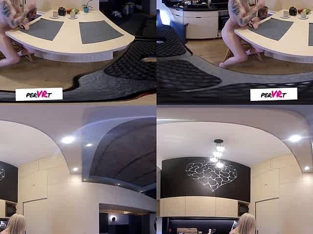 Lesbos having hard orgasms in the kitchen with their morning espresso