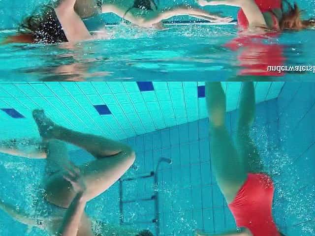 Russian hotties swim all jointly and get every other undressed
