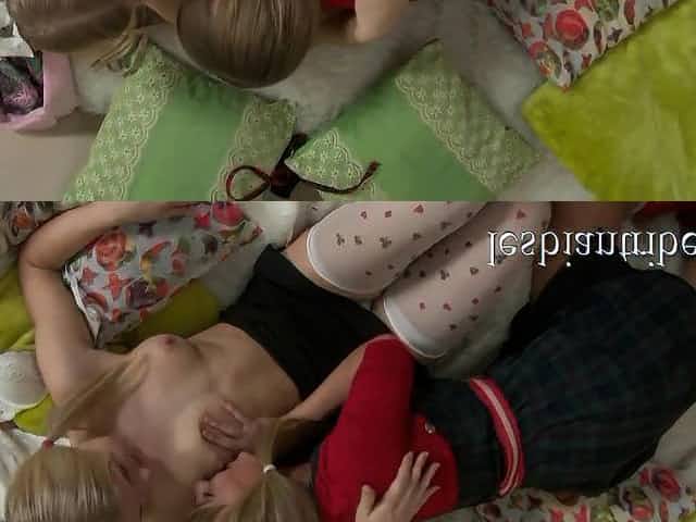 young little sluts Olivia and Renee licking pussy and have