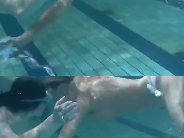 Retro footage of two underwater lesbians