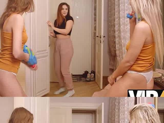 Russian girls trick their friend into having sex in a threesome