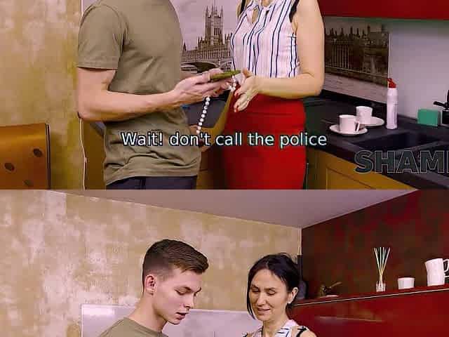 SHAME4K. Stealing is bad but a mature woman rehabilitates herself by having sex in the kitchen