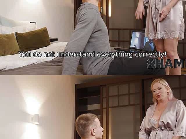 SHAME4K. Blonde teacher lets a student fuck her to keep her second job a secret