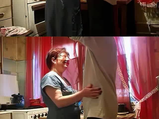 Russian mature stepmom Nyura with her son in the kitchen