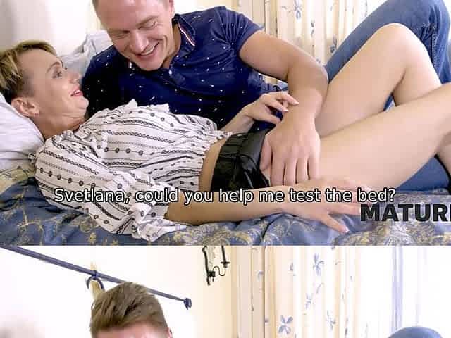 Mature Russian lady seduces a college guy and gives him a hot blowjob