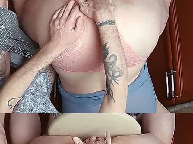 Stepmom surprises me by jerking off my huge cock to completion