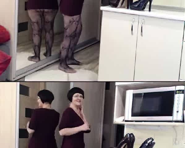 Russian aged mother seducing younger in silk suit pt1