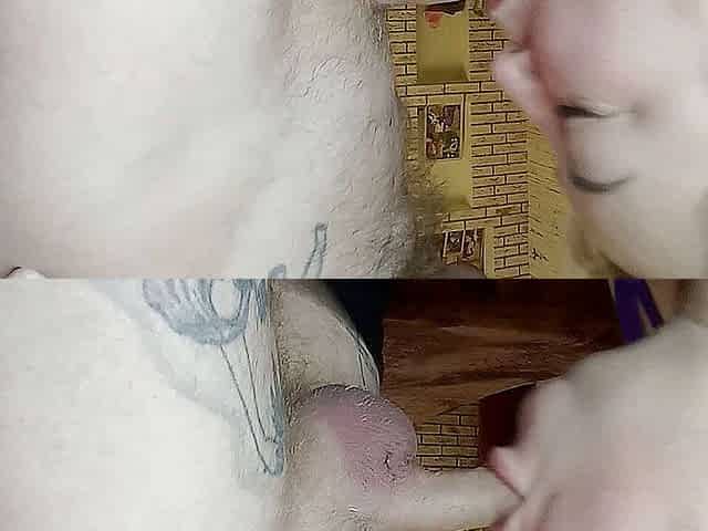 jerking off a dick and cumming on her face 2