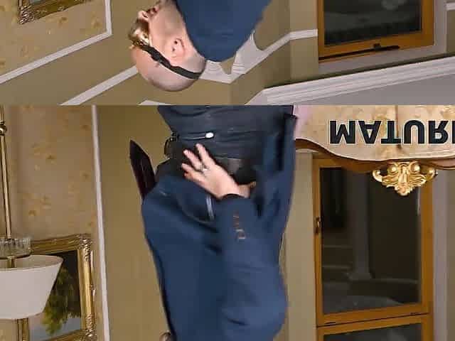 While I'm repairing the chandelier, she plays with my dick, sucks it, and fills her mouth with cum