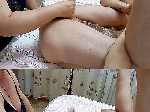 a fat woman licks my ass and jerks off a cock with strained eggs