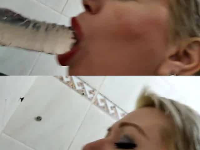 A Mature Bitch Takes A Shower And Sucks A Dick Rubbing Sperm On Big Tits))