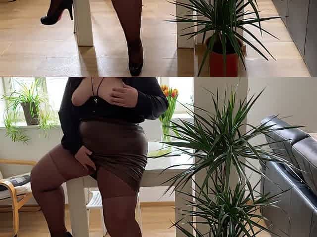 Lustful Stepmother-in-law In Pantyhose Masturbates Her Pussy And Gets Hot Cum On Her Ass In A Skirt