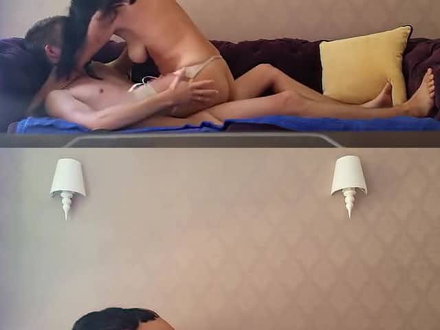 POV. daughter fucks toy, stepmother with huge tits