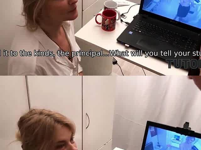 TUTOR4K. Student forgets about party and fucks biology tutor