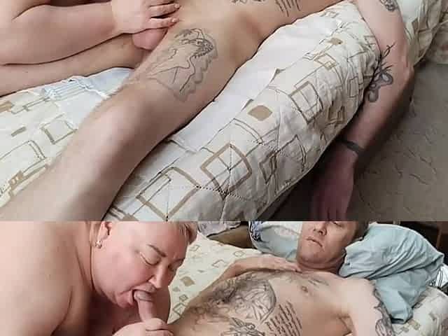 Stepmother-in-law Massages A Penis With Her Hands Makes A Deep Blowjob And Gets A Big Cumshot