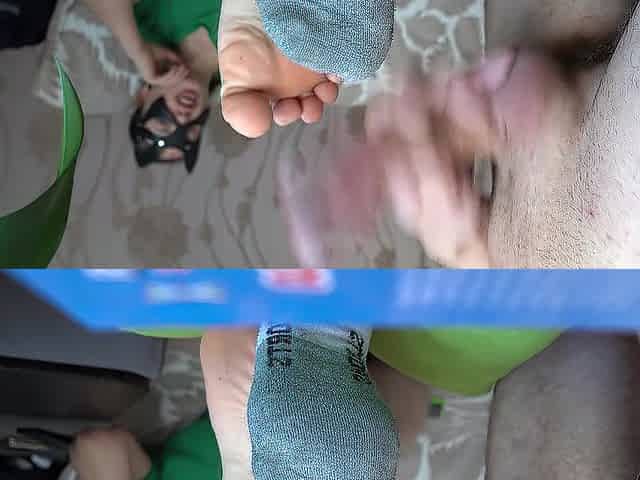 A dude jerking his curly ramrod on my bawdy sock feet