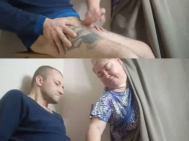 Mature Russian stepmom in bathrobe and towel gives a loving handjob