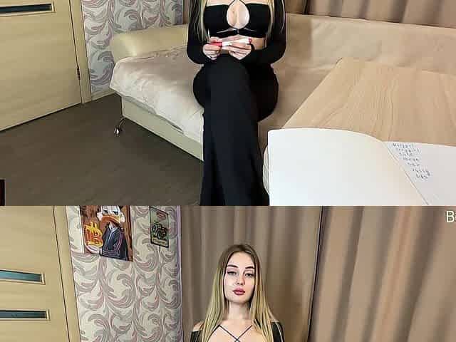 Alyona teases her husband by caressing her pussy in her panties, making him cum in her panties.