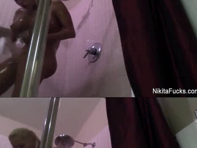 Watch her raw gash get romped in the shower while you stroke your phat faux-cock - sensational HD porn!