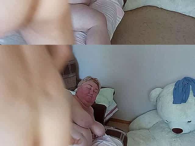 My swollen dick is jerked off by a fat MILF and sucks it until I finish with a shot of cum