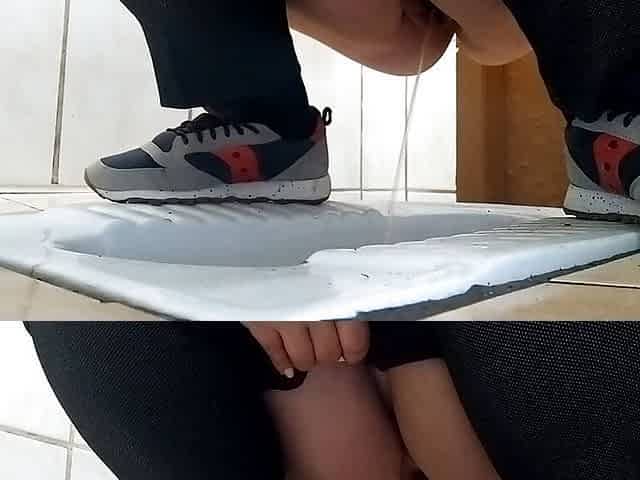 In a park full of people, milf gets her tight leggings completely wet in hot pee.