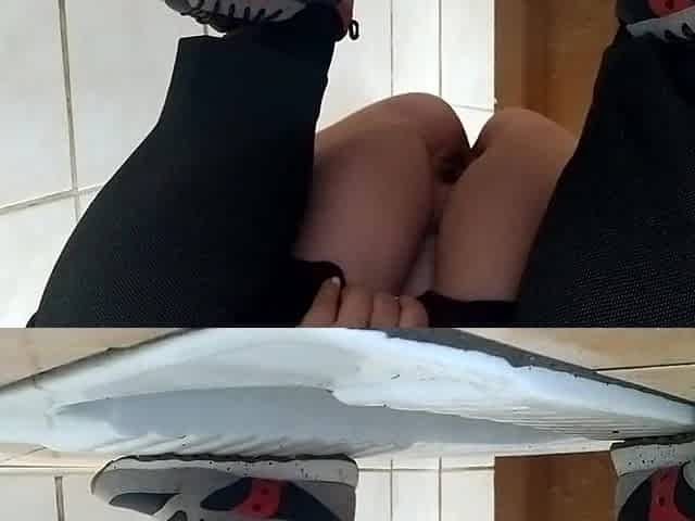 Curvy MILF pissing in a dirty public toilet