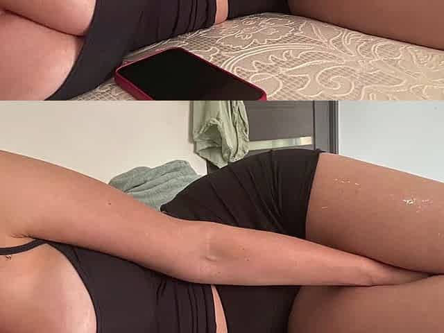 Fitness gal brought herself to climax with a sex tool. Legs are trembling