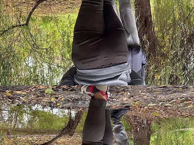 MILF in leggings pissing in autumn park