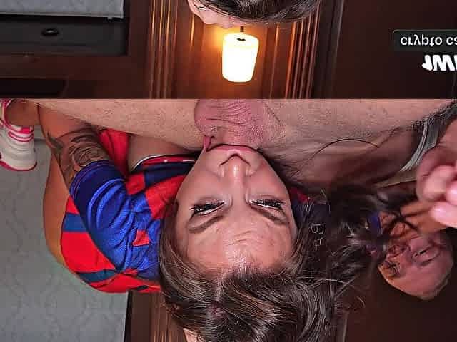 Hot stepmom Kisscat gets face fucked by her step son-in-law and ends up swallowing his load